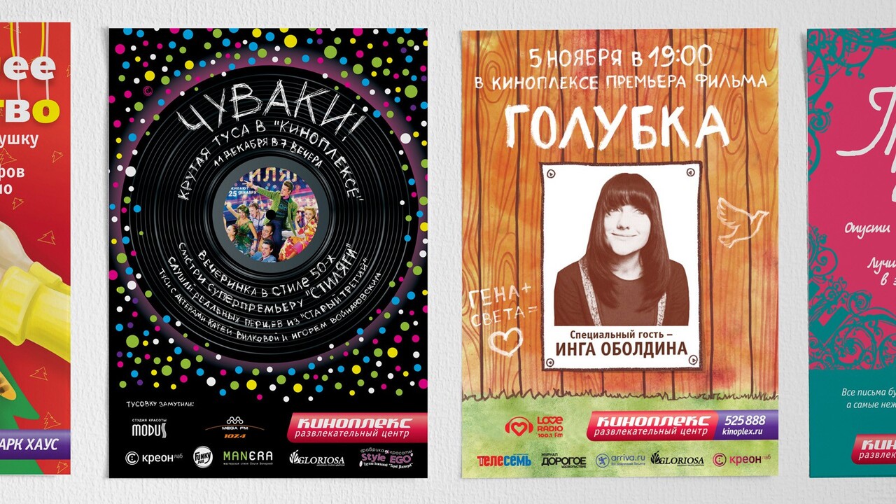 ЗАДАЧА: Разработать серию плакатов-афиш для мероприятий сети кинотеатров «Киноплекс».