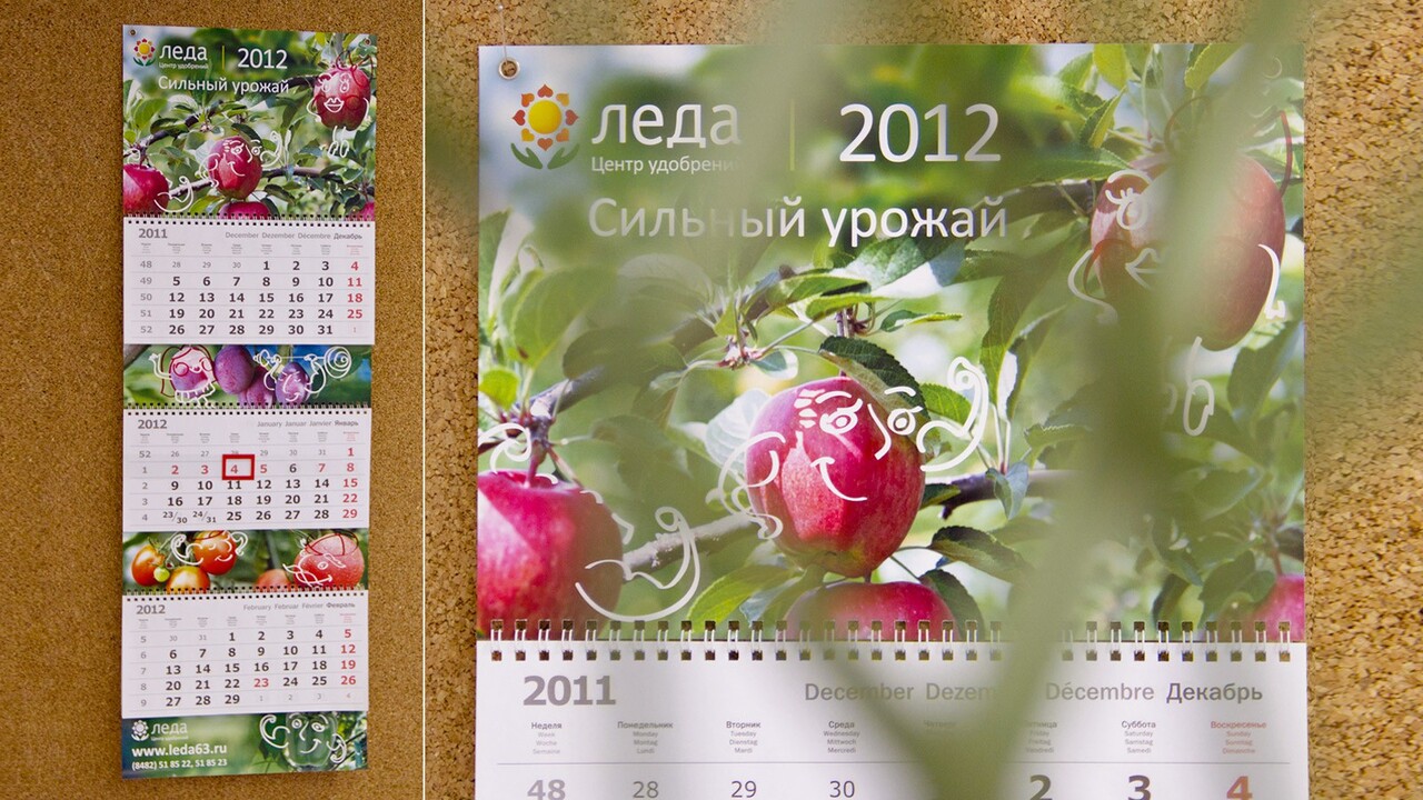 Задача: Разработать для самарского центра удобрений «Леда» необычный концептуальный календарь и сувенирную продукцию на 2012 год.