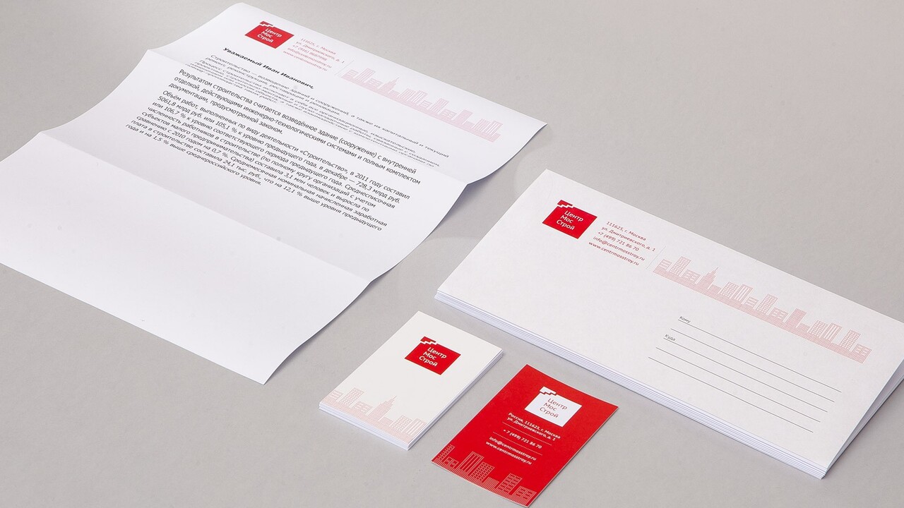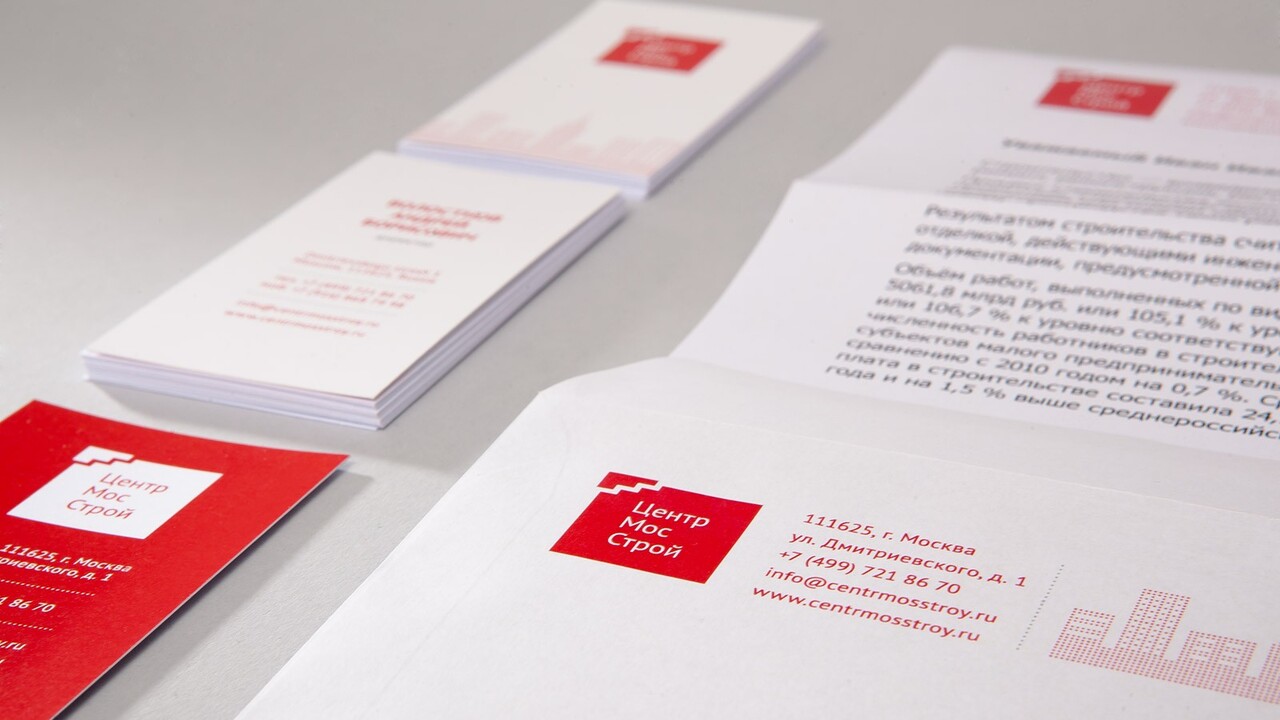 ЗАДАЧА: ЦентрМосСтрой – группа компаний, которая занимается разработкой и созданием строительных объектов, располагает собственным производством пластиковых окон и полимеров, а также владеет предприятием по обработке камней. Для компании необходимо было разработать фирменный блок и фирменный стиль.