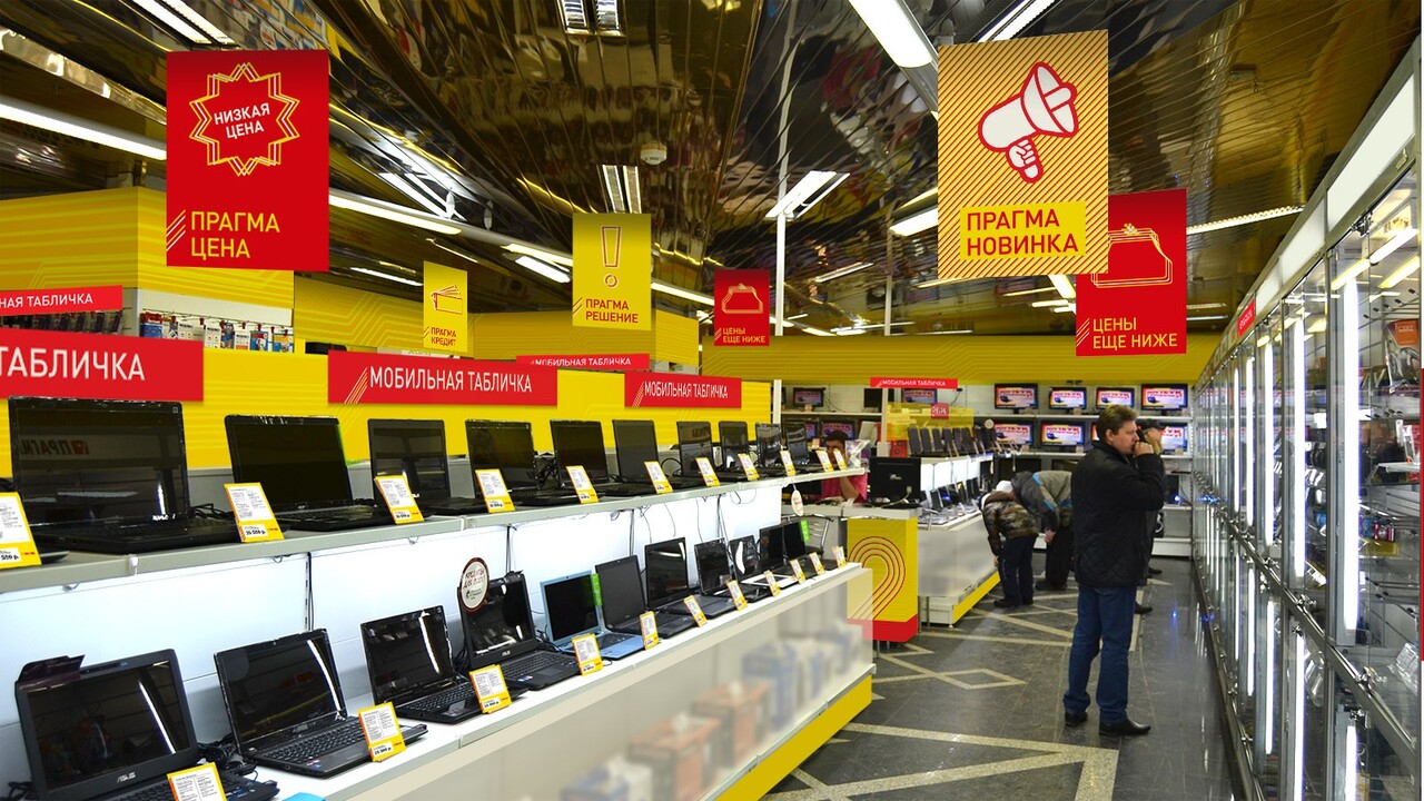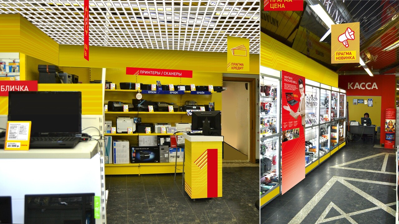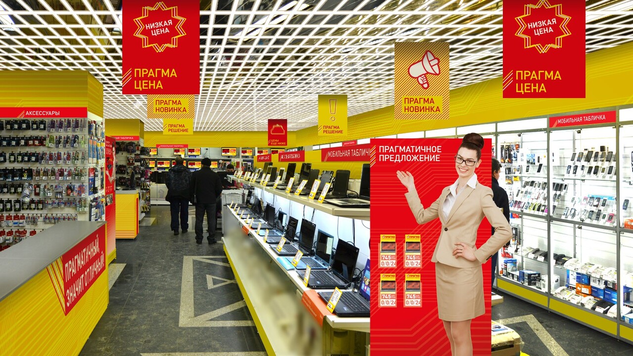 ЗАДАЧА: Создать цельное имиджевое пространство магазинов для сети компьютерной и цифровой техники  «Прагма».