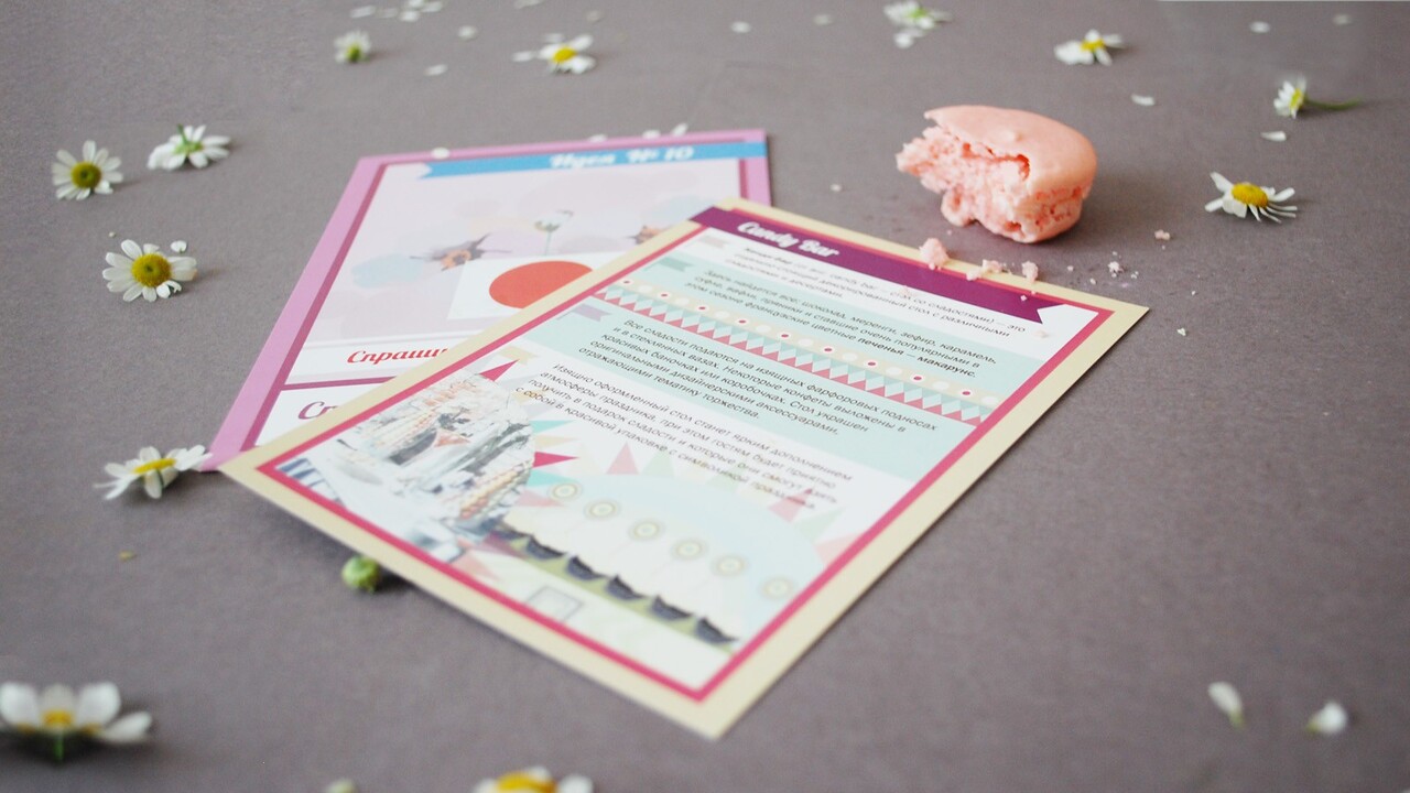 РЕШЕНИЕ: Вкусные идеи праздников на любой вкус превратились в открытки с нежным оформлением в пастельных тонах, которое не отвлекает внимание от самого главного – меню угощений и праздников. А чтобы при чтении было чем утолить свой не на шутку разыгравшийся аппетит, «ШЕФ» заботливо предлагает целый стратегический набор тающих во рту макарунсов. Одним словом, 33 удовольствия!