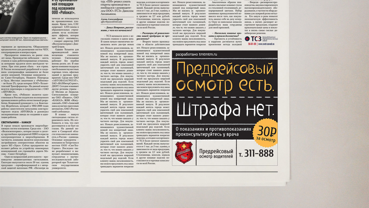 ЗАДАЧА: Разработать рекламную кампанию для компании, занимающейся предрейсовым осмотром водителей.